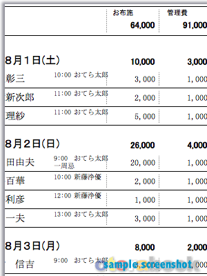 満中陰・百か日法要・年忌法要の日程表、檀家(門徒)様向けへの案内状の住所印刷(ハガキ・ラベル・封筒への直接印刷をサポート)、各管理費・維持費の記録・印刷